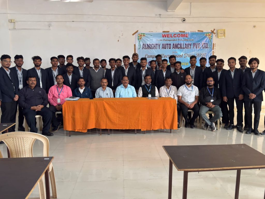 A campus recruitment drive was conducted by Almighty Auto Ancillary Pvt. Ltd., Maharashtra, to recruit graduate trainees from the Mechanical Engineering, Electronics and Communication Engineering, and Electrical Engineering branches. Almighty Auto Ancillary Pvt. Ltd. is a leading manufacturer of windshield wash and wipe systems and precision machined components, supplying major OEMs across India and abroad. Mr. Raghunath Pathak, Senior Manager (HR and Admin), introduced the company and oversaw the entire selection process. The event was coordinated by Professor Manmohan Sahoo. After the group discussion and interview rounds, 30 students were selected as graduate trainees.